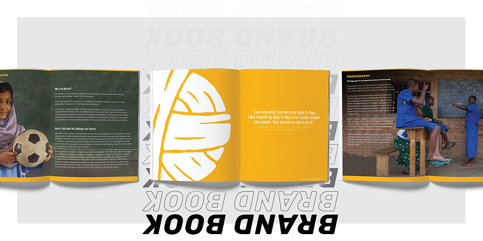 Complete Brand Guidelines Book to coincide with @righttoplayintl re-brand. This book is unique as it’s fully digital with links to various brand assets in the actual book. It includes stationary to sizing specifications of the logo to photography. The design stays consistent with clean white space to double page spreads with full bleed imagery! 📚